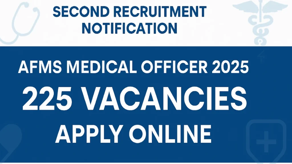 This is a recruitment drive with a specific focus on the defence forces’ Medical Officer positions, and it will give many qualified applicants a prestigious and secure government job. This detailed article will talk about AFMS Medical Officer Recruitment 2025 in detail, along with its most important dates, the number of vacancies available, whether the applicant has to meet certain eligibility requirements or not, the application process, fees, the methodology of selection, and other important information that every applicant needs to know before applying.