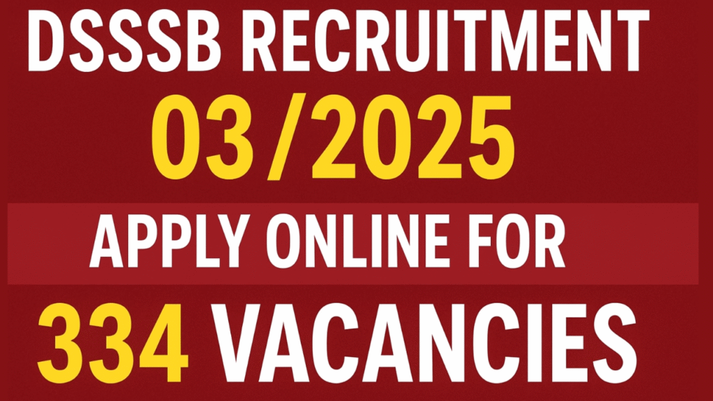 Delhi Subordinate Services Selection Board (DSSSB) has released a fresh notification for recruitment,, and this time it comes with a total of 334 vacancies under DSSSB Recruitment 03/2025. Many candidates had been waiting for this chance, and finally the time has arrived to apply before the closing date. DSSSB is one of the most respected boards for recruitment in Delhi, and candidates who are looking for government jobs should not miss this opportunity.