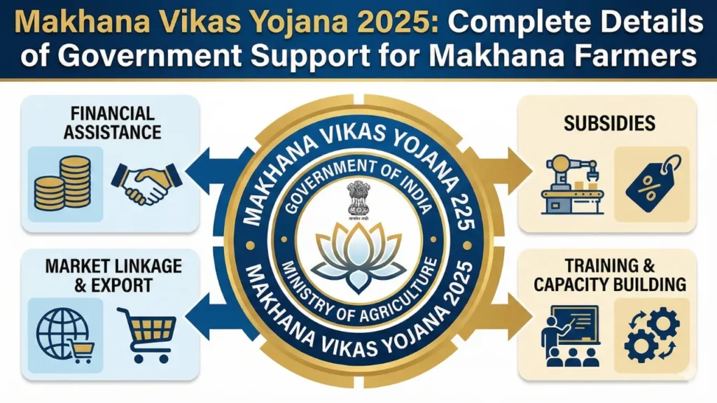 Makhana Vikas Yojana is a government-backed agriculture scheme designed to promote makhana farming through technical training and financial assistance. The scheme focuses on improving traditional farming practices and making them more efficient.